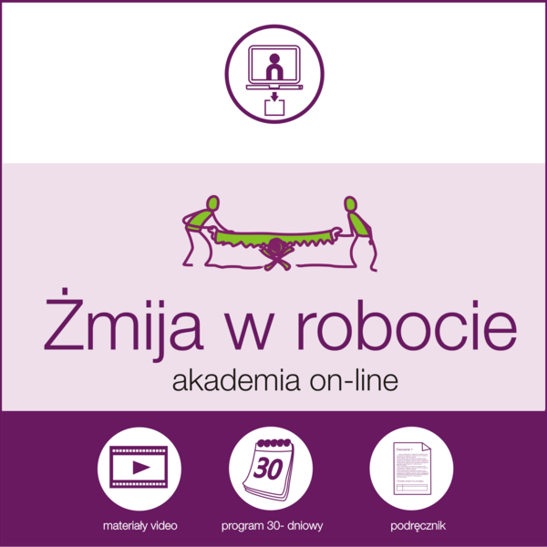 Akademia "Żmija w robocie", dedykowana jest wszystkim tym, którzy chcą poznać i przećwiczyć metody utrzymania dobrych relacji w pracy z osobami, które im życie utrudniają. Stworzyliśmy ją z myślą o tych wszystkich, którzy na co dzień mają obniżony komfort pracy z uwagi na relację ze współpracownikiem, Klientem, szefem. Ta akademia ma dać Tobie możliwości zarządzenia swoim komfortem w sytuacjach dla Ciebie zawodowo trudnych, kiedy kontakt ze "Żmiją" jest nieunikniony.